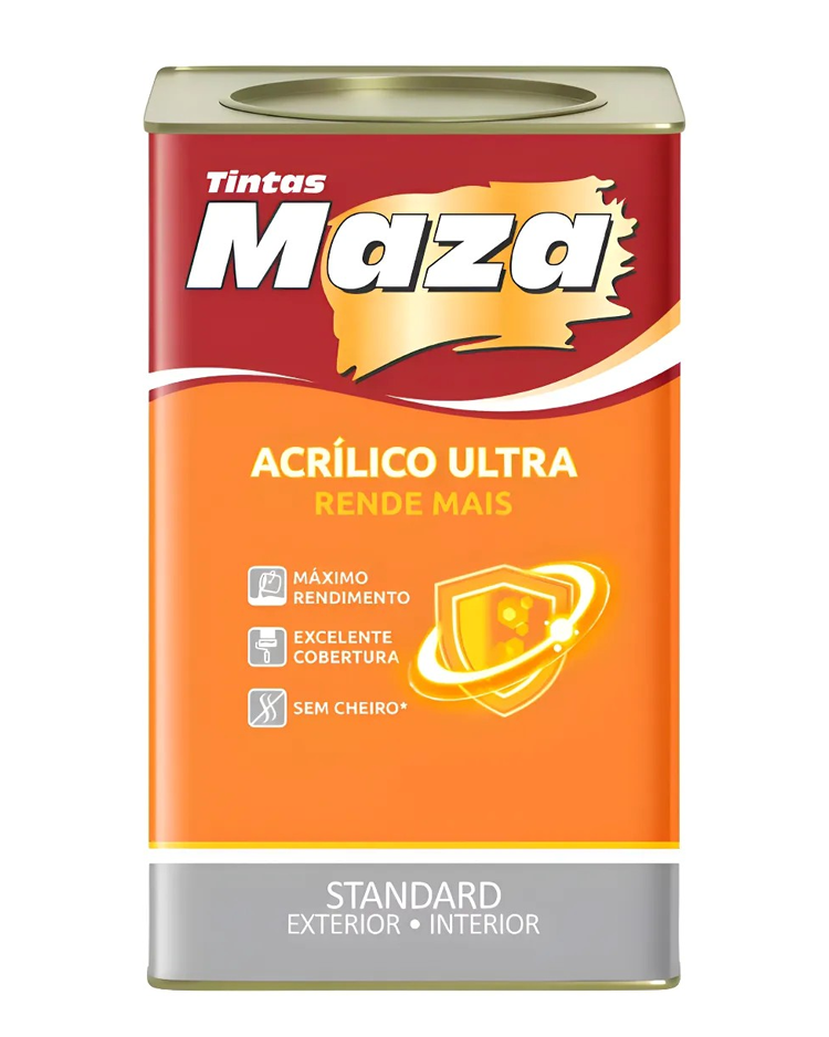 Acrílico Ultra é uma tinta acrílica, de categoria Standard, no acabamento Fosco, indicada para pinturas de superfícies externas e internas de reboco, massa acrílica, texturas, concreto, fibrocimento, etc.